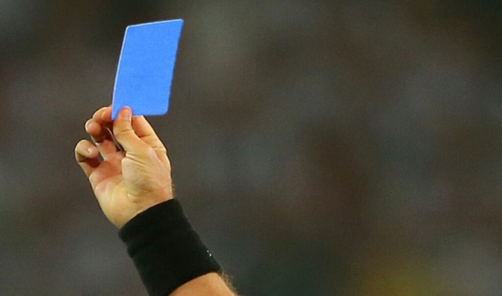 El reglamento prevé la utilización de una tercera tarjeta de color AZUL y básicamente su sanción implica estar 5 minutos fuera de la cancha NO pudiendo ser reemplazado hasta cumplir con la sanción. Su finalidad principal es calmar al jugador sin necesidad de recibir una tarjeta amarilla. Su utilización será por decisión del árbitro y su uso no reemplaza la tarjeta amarilla o roja.