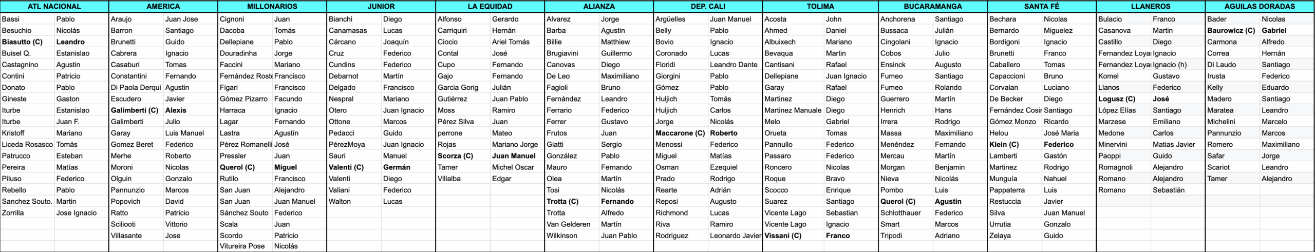 | FERNÁNDEZ ROSTELLO (Millonarios) | 2-3 | 2 | – | – |